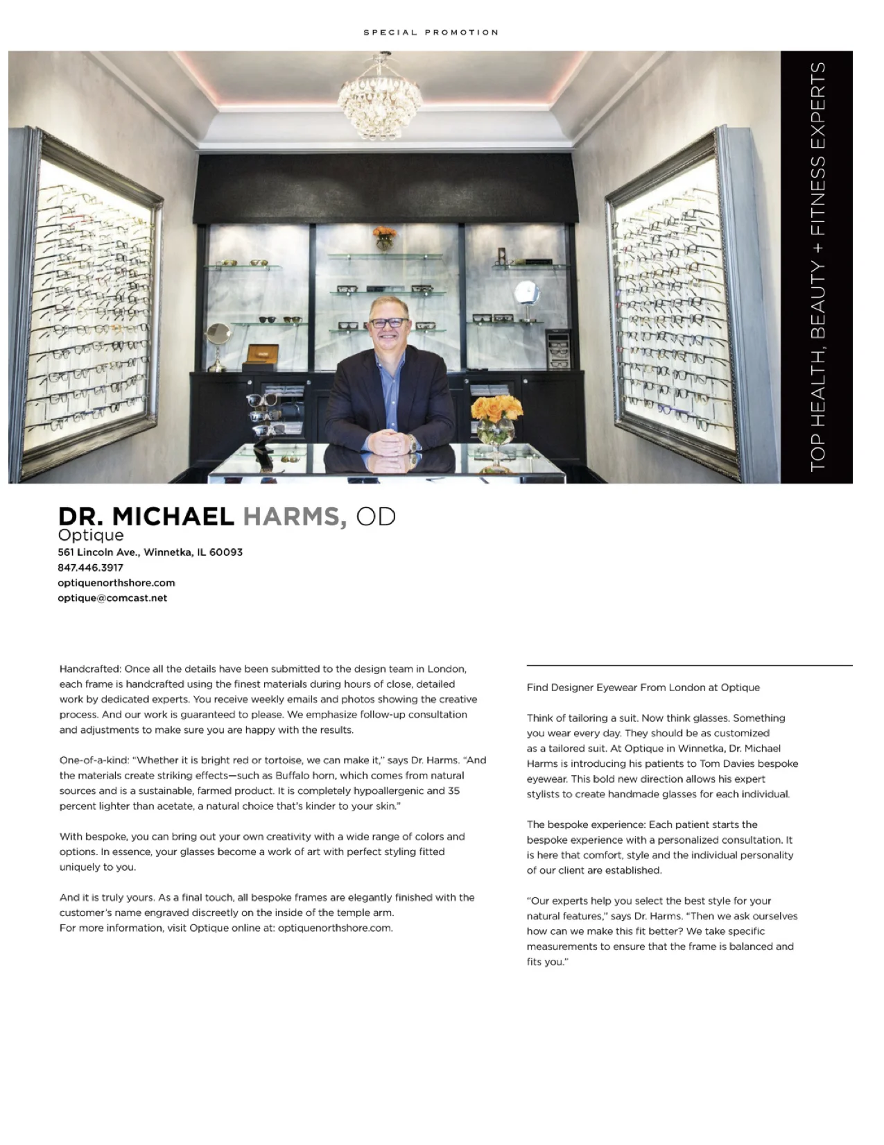 We've created a new concept store featuring a chic design with a modern flare. This new store began with the idea that “one size does not fit all”. Partnered with London based designer Tom Davies, and expert stylists, bespoke will bring custom made eyewear to the entire Chicagoland area!